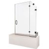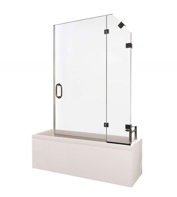 Our custom bath screen style 8, is hinged from an angled fixed panel.