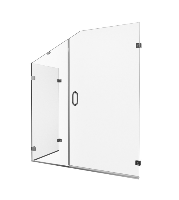 This custom built shower unit is hinged from the right hand wall and can be built to your exact measurements, with hardware finishes to suit your designs. This made to size shower enclosure is created by using 2 pieces of sloping glass to accommodate ceilings with restricted height or awkward slopes, a great way to create an attic shower space.