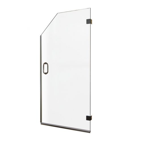 This angled shower door is hinged from the right hand side and closes onto an angled fixed panel suitable for a sloping roof. It can be built to your exact sizes with finishes to suit your style. This shower unit is made using 2 pieces of sloping glass to accommodate ceilings with restricted height. A great way to fit a shower in your attic conversion.