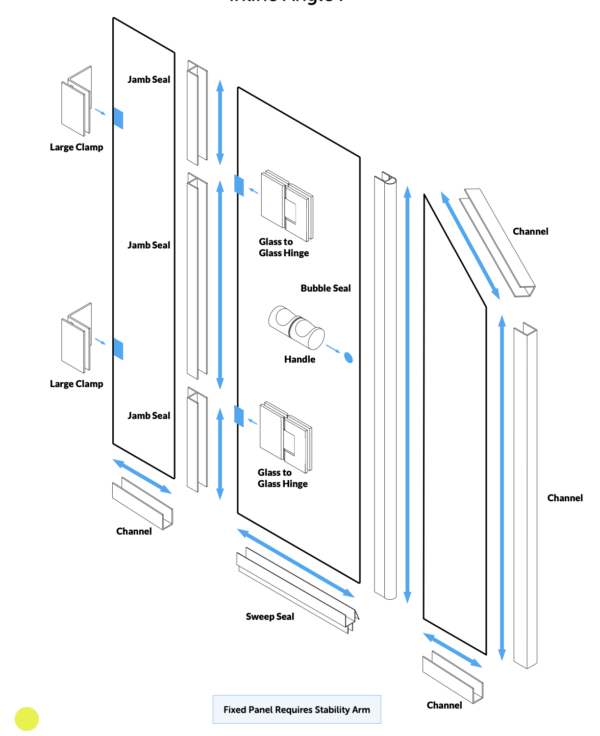 ii) Diagonally to the wall the panel is attached to (glass to adjacent wall)