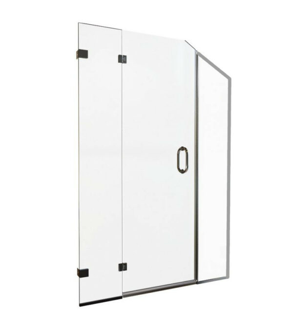 Our Inline Angle 9 bespoke shower door hinges from the left hand side panel and is a perfect solution for shower areas with sloping ceilings. Made using 3 pieces of glass, angled on one side and on your door, it’s ideal for those bathrooms where space is tight.